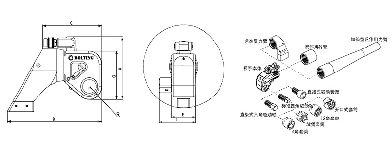 產(chǎn)品的選取依據(jù)螺栓鎖緊和拆松扭矩而定,扭矩值會因螺栓直徑和強度等級不同而有所變化。