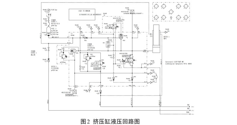 拉伸墊的擠壓力是依靠滑塊壓上拉伸墊而被動產(chǎn)生的壓力,壓力大小的控制由伺服閥來實(shí)現(xiàn)。常見的壓力下超故障有缸體活塞密封泄漏、安全閥損壞、伺服閥損壞、預(yù)充油液不足等形式。首先擠壓缸上行是依靠 20bar 的預(yù)充壓力推動活塞桿跟隨頂冠上行至上死點(diǎn),由于在該過程中每個(gè)缸的壓力和位置都沒有監(jiān)控,即使出現(xiàn)預(yù)充壓力不足、活塞沒有上行至上死點(diǎn)都不會故障報(bào)警,如圖2所示。在沖壓力下超故障出現(xiàn)以后,可以在操控面板的幫助界面查看擠壓缸預(yù)充壓力是否正常,排除預(yù)充壓力是否合適以后,再排查伺服閥以及伺服閥控制模塊。在長時(shí)間停機(jī)或者拉伸墊大修以后出現(xiàn)擠壓力下超故障,應(yīng)優(yōu)先檢查插裝式安全閥。由于插裝式安全閥控制油和系統(tǒng)油都是來自擠壓缸的油,而正常情況下安全閥芯都不動作,閥芯活動間隙被油泥填充,在檢修或者啟動期間,如果安全閥芯被意外開啟,復(fù)位彈簧將不能使閥芯復(fù)位。閥芯沒有復(fù)位,擠壓缸下腔的就不能建立起需要的壓力,導(dǎo)致故障產(chǎn)生。