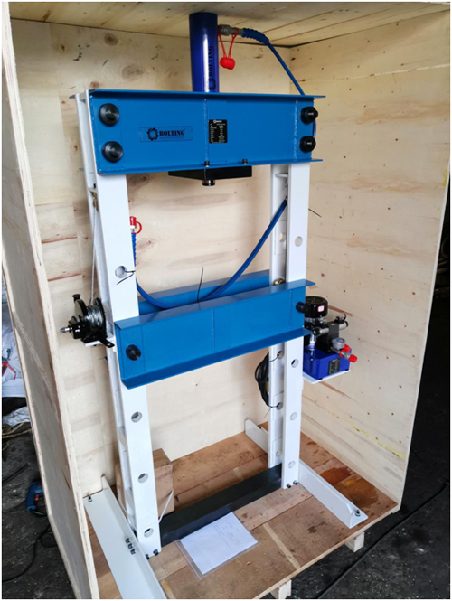 BOLTING博霆30噸液壓壓床,車間檢修用30噸H型液壓壓床完成測試,準(zhǔn)備發(fā)貨。