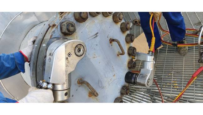液壓扳手泵壓壓力正常,上壓驅(qū)動(dòng)部位也有反應(yīng),但卻顯示無力,帶不動(dòng)螺栓螺母,吃不上力,這個(gè)故障出現(xiàn)有三種可能。第一種,我們所要拆卸或者擰緊的螺栓扭矩遠(yuǎn)遠(yuǎn)高于我們所用扳手型號(hào)的最大輸出扭矩,也就是小馬拉大車就會(huì)“力不從心”轉(zhuǎn)不動(dòng)。另外兩種情況都出在液壓扳手驅(qū)動(dòng)部位機(jī)械故障。一個(gè)是連接銷斷裂導(dǎo)致活塞無法將力傳導(dǎo)至驅(qū)動(dòng)部件;一個(gè)是驅(qū)動(dòng)部件比如棘輪或者棘爪斷裂、嚴(yán)重磨損導(dǎo)致扳手驅(qū)動(dòng)花齒吃不上力轉(zhuǎn)不動(dòng)。